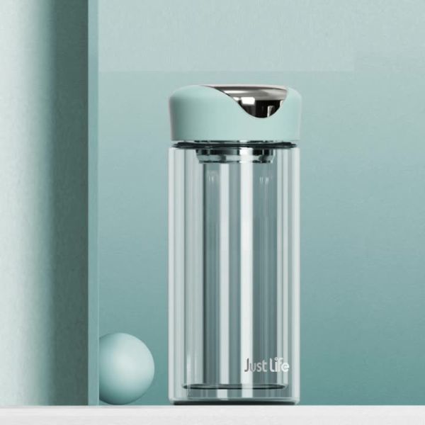 Spill-Proof Double Wall Borosilicate Glass Tumbler With Strainer And Lid